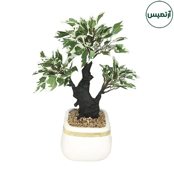 بنسای مصنوعی با طراحی ساده و شیک، گزینهای ایدهآل برای میزها و شلفهای مینیمال و دکور مدرن است.