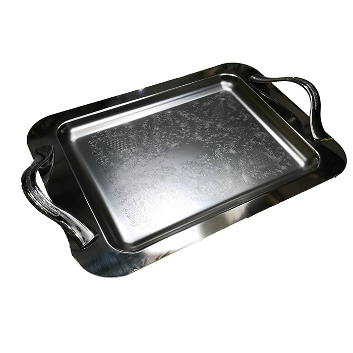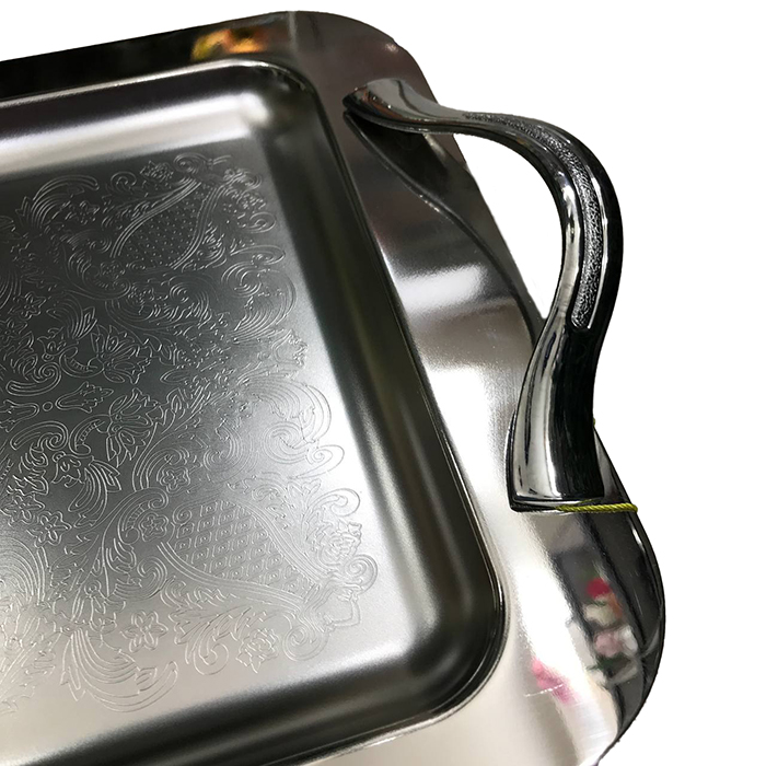سینی استیل مستطیل ساده ۱۸/۱۰ مناسب برای پذیرایی در میهمانی ها و قابل شستشو با آب و مایع ظرف شویی ، به هیچ عنوان تغییر رنگ نمیدهد وبه مدت طولانی ازآن استفاده کنید. ساخت ایران برند NTC